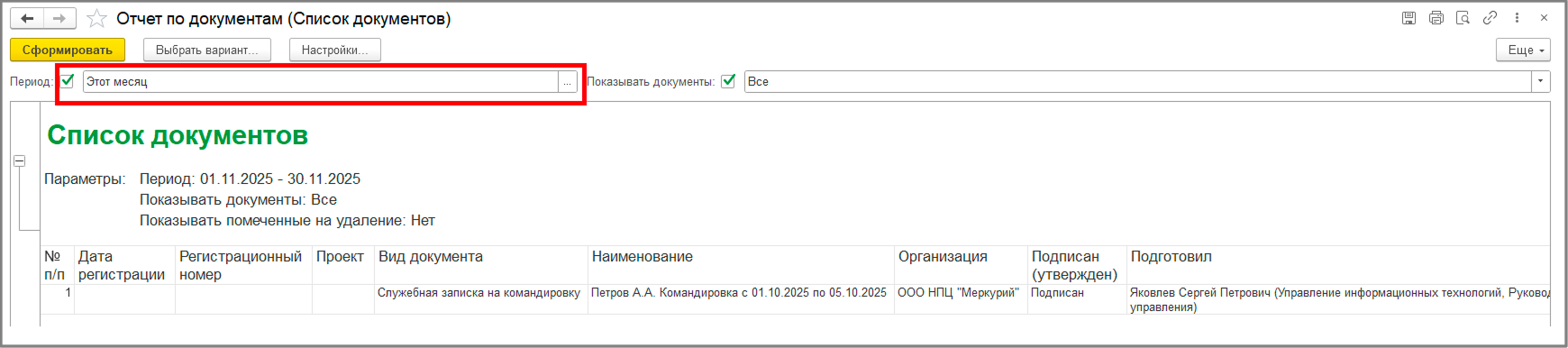 (Рис. 10. Отчёт «Список документов»)