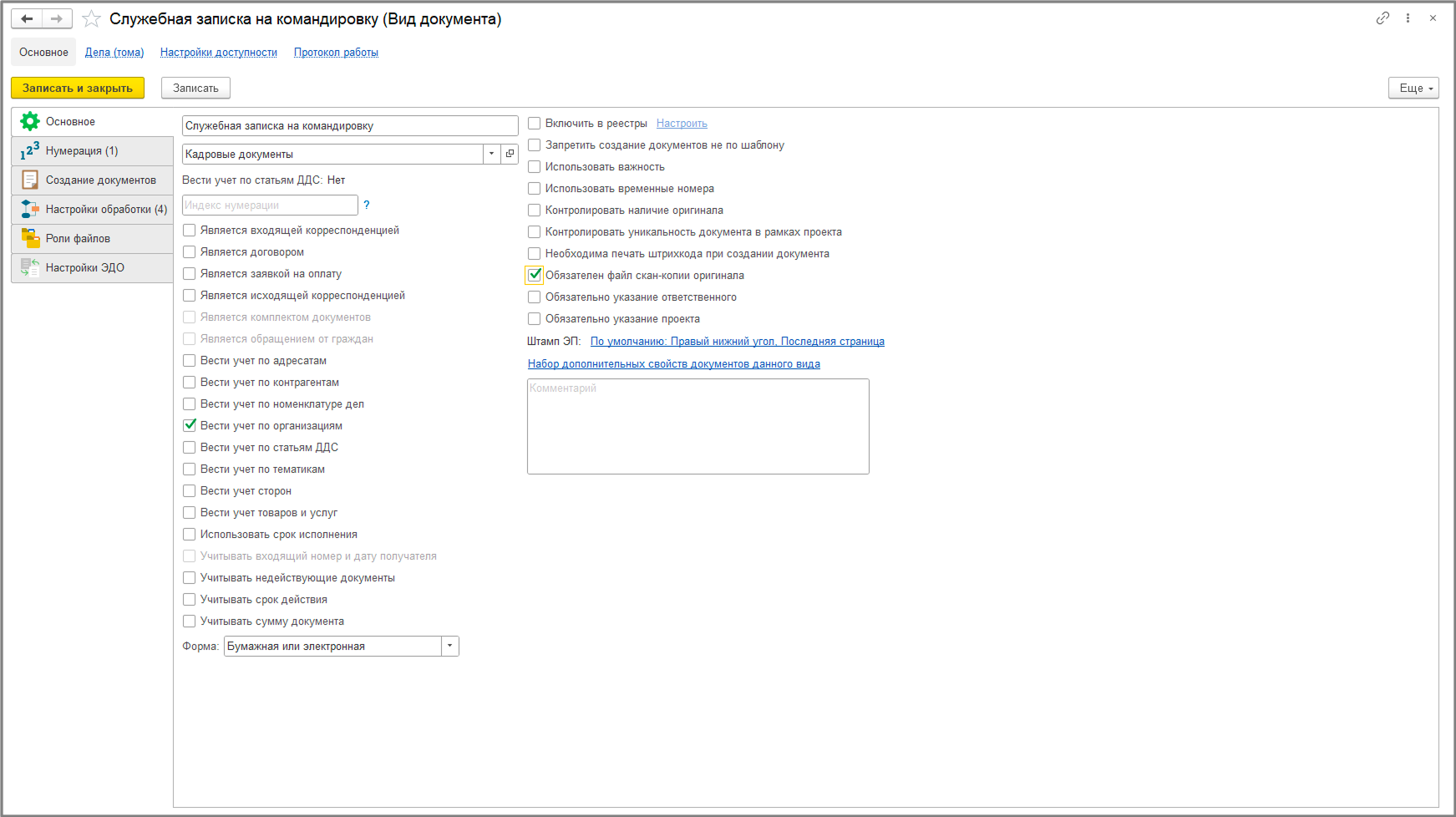 Файлы: здесь отображаются все файлы, прикрепленные к документу. Предусмотрена возможность пометки файла как скана оригинала.